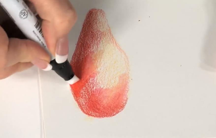 - Blend với bút marker colorless của Prismacolor: Phần màu tan ra rất nhanh, tạo nên vùng màu khá đẹp mắt.