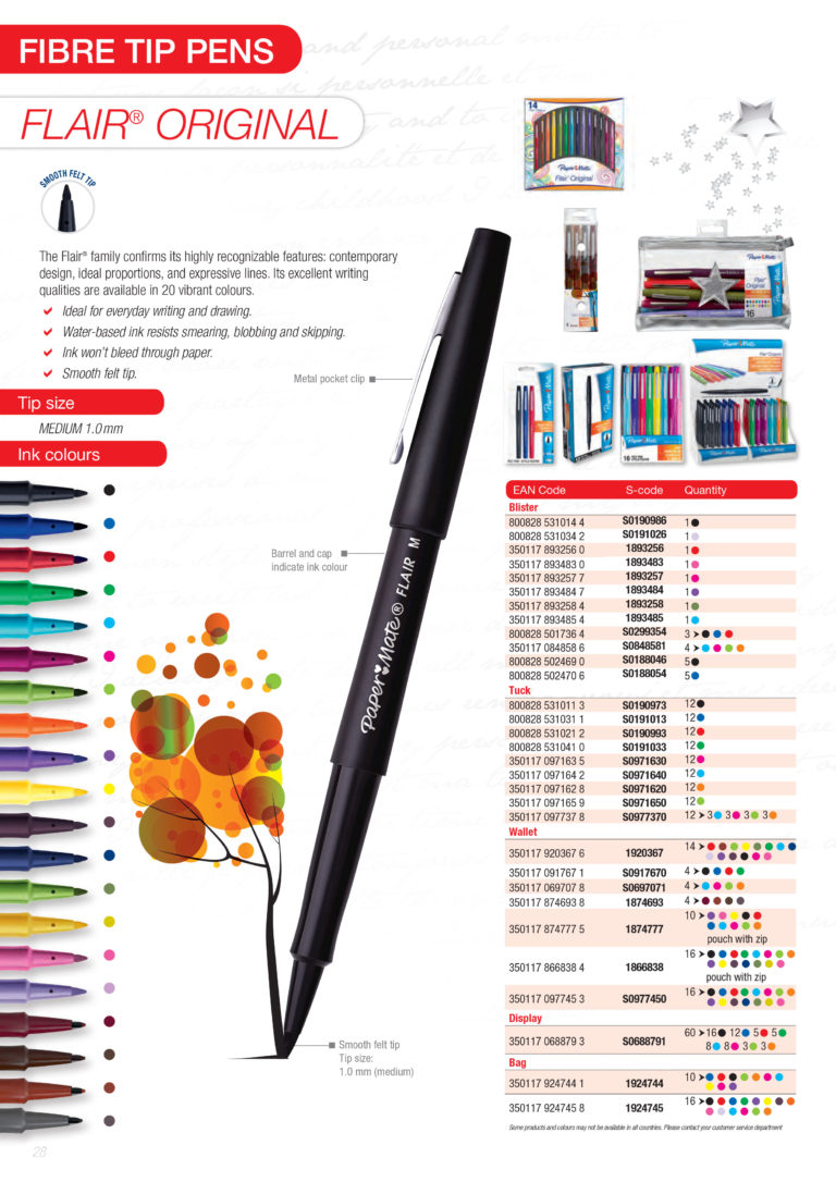Mực Paper Mate cho màu sắc tươi sáng, rực rỡ sống động mà ít dòng bút mực nước nào có được. Khi mực khô màu vẫn giữ được độ tươi sáng như vừa viết. Bút có 31 màu sắc khác nhau, cùng nhiều loại vỉ màu giúp bạn có thểm nhiều lựa chọn hơn cho các dự án nghệ thuật của mình..