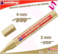 Ngòi tròn, kích thước nét 2-4 mm. Edding 750 có 14 màu sắc khác nhau để bạn lựa chọn như: Black, Red, Blue, Red, Gold, Silver, Copper,... Xem bảng màu . Và các kích thước ngòi khác nhau, tùy theo nhu cầu như: Edding 751 (1-2mm) , Edding 780 (0.8mm)