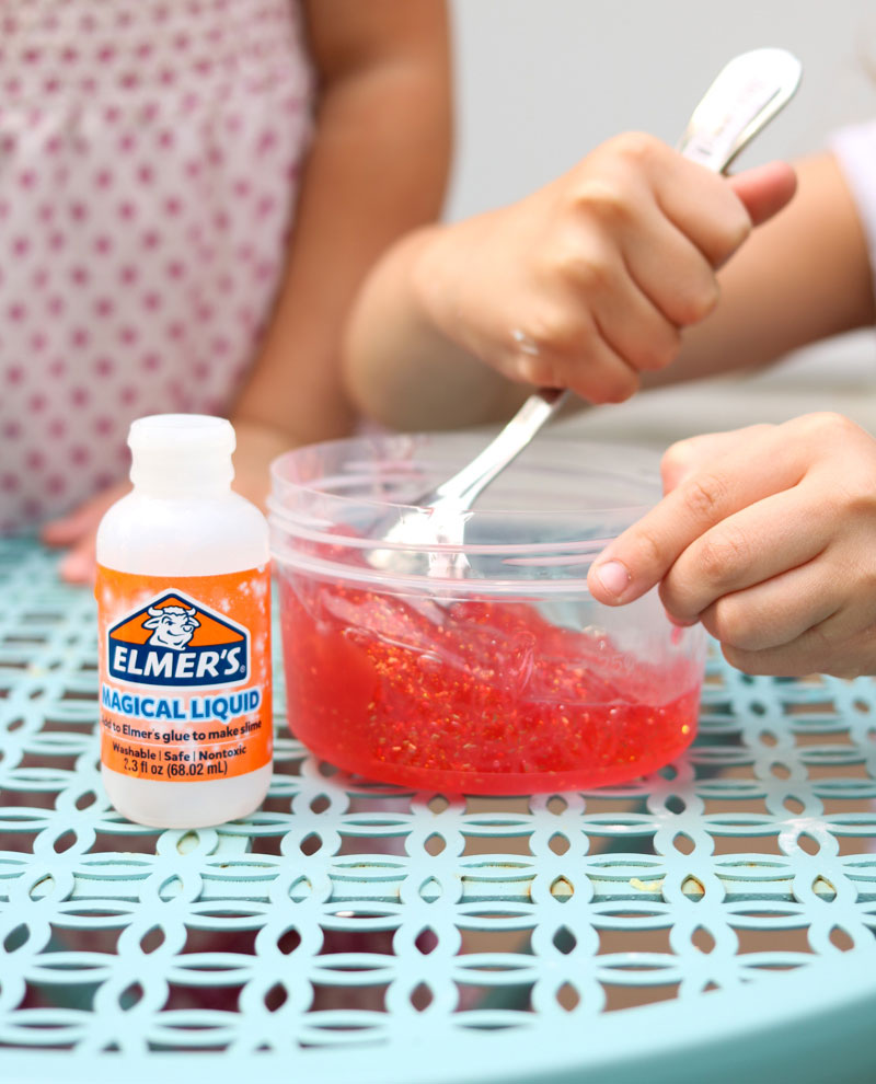 Khi phong trào chơi slime xuất hiện, Elmer’s trở nên nổi tiếng nhờ công thức tạo slime đơn giản và an toàn. Bằng cách kết hợp 2 sản phẩm: Keo đa dụng (Elmer’s Glue) và “nước thần kỳ” (Elmer’s Magical Liquid) – một loại dung dịch đa năng thay thế cho những nguyên liệu và hóa chất khác như borax, nước rửa kính sát tròng, hay nước rơ lưỡi… công thức Elmer’s vừa giúp tiết kiệm thời gian vừa an toàn cho trẻ nhỏ.
