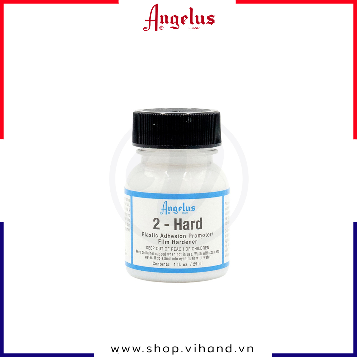 Angelus 2-Hard là dung môi đến từ thương hiệu Angelus (Mỹ). Thường được pha với màu Angelus Leather Paint để vẽ trên các bề mặt cứng như nhựa, thủy tinh, kim loại…giúp làm tăng độ bám dính và độ cứng của bề mặt sơn. Ứng dụng trong custom giày, túi xách, cặp, dây đồng hồ, thắc lưng,… . Nên sử dụng dung môi 2-hard với các lọai vật liệu ít xốp, ít linh hoạt.
