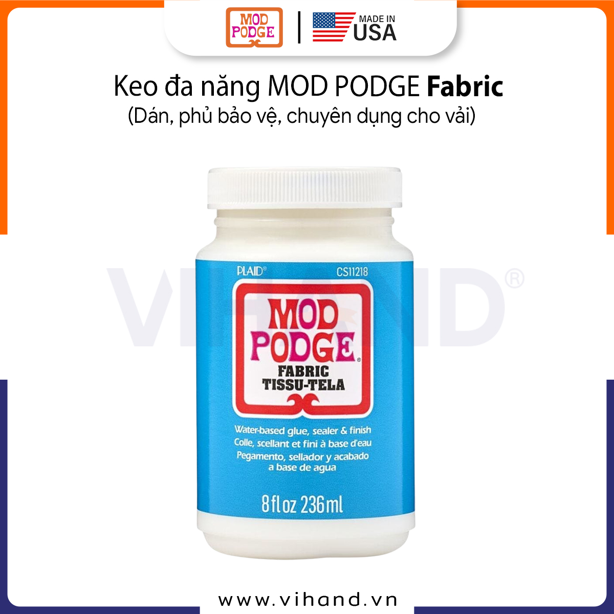 Keo Mod Podge Fabric là dòng keo chuyên dụng dành cho chất liệu vải, thuộc thương hiệu thủ công nổi tiếng Mod Podge nhập khẩu trực tiếp từ Mỹ (USA). Sản phẩm được thiết kế đặc biệt để dán cố định và bảo vệ các họa tiết trang trí trên bề mặt vải, giúp việc sáng tạo và trang trí đồ vải trở nên dễ dàng, bền đẹp và chuyên nghiệp hơn.