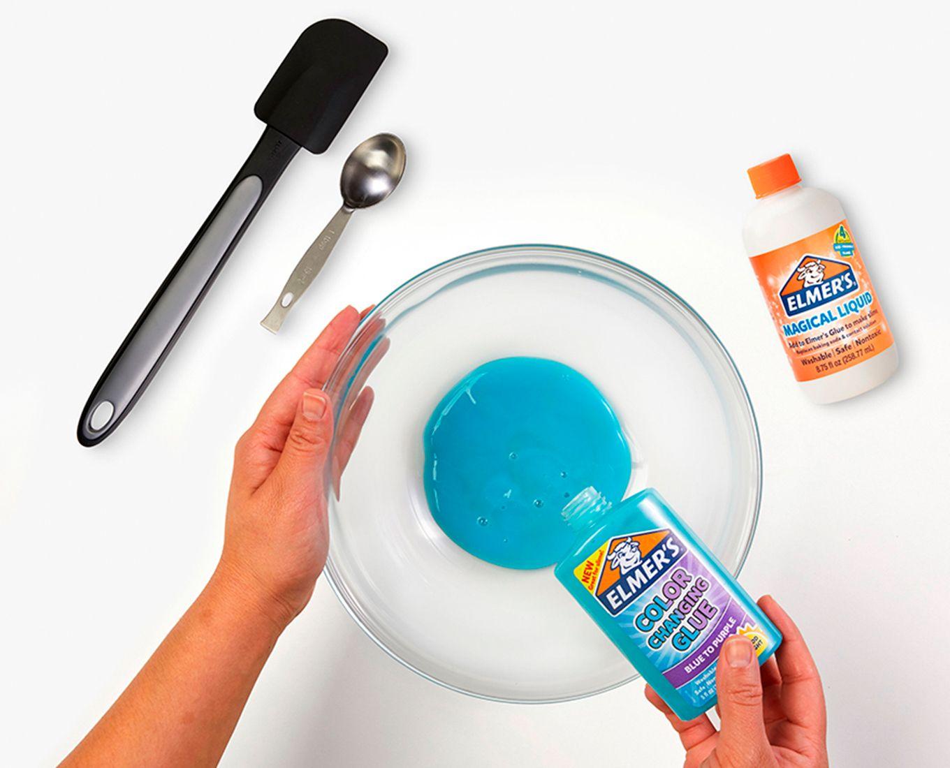 - Bước 1: Đổ hết 1 chai keo dán thay đổi màu sắc Elmer’s Color Changing Glue 147ml vào tô sạch.