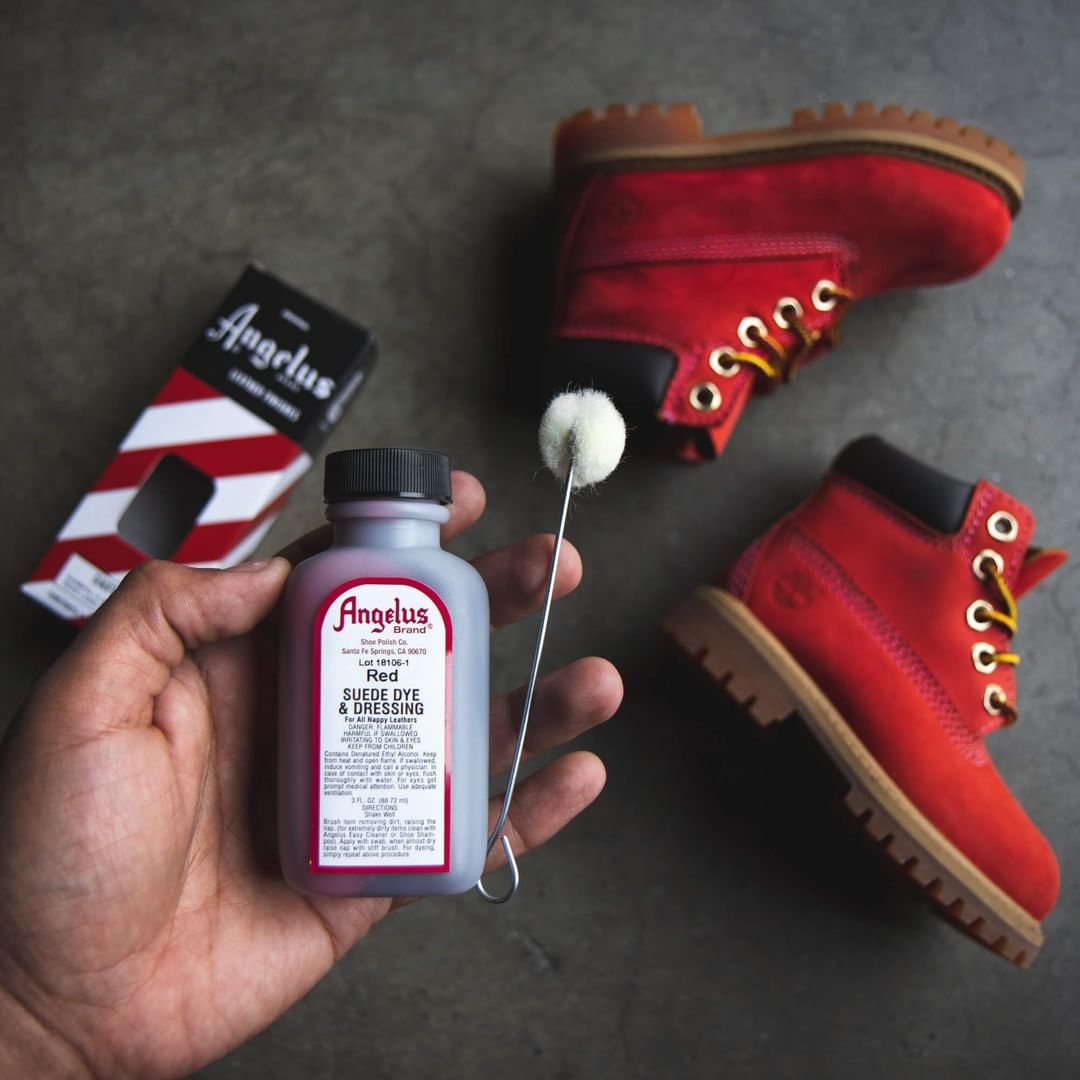 Angelus Suede dye làm màu nhuộm chuyên dụng cho da lộn đến từ Angelus. Màu thấm màu tốt, không làm khô cứng da lộn. Nên sử dụng kết hợp với Bình xịt chống thấm nước Angelus Water & Stain Repellen để đạt hiệu quả cao nhất.