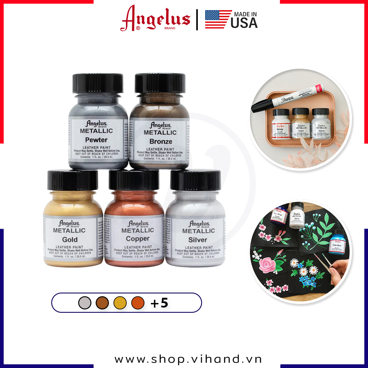 1. Thông tin chi tiết về màu vẽ da, vải Angelus Leather Paint Metallic (Ánh kim):